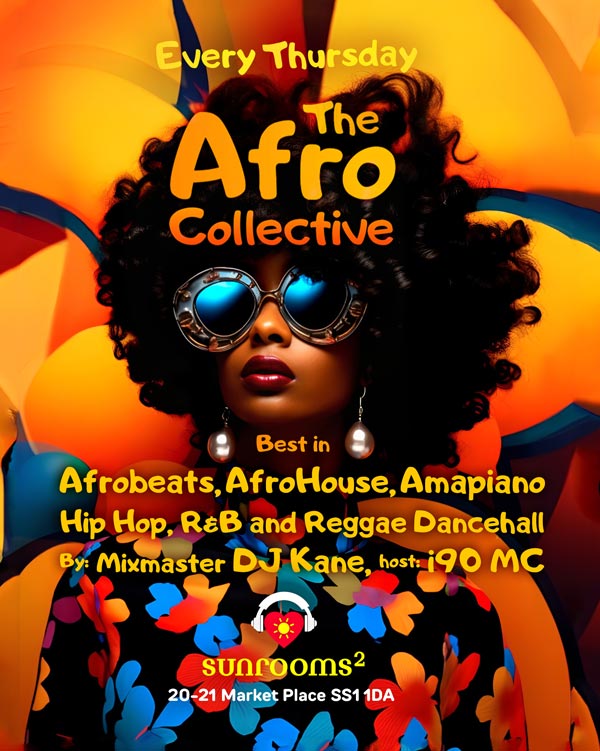 The AfroCollective is Southend’s gateway to a full cultured experience of popular African Muzik – with MixMaster DJ Kane banging out the best in AfroBeat genres of Afro House, Afro Swing, Amapiano and more.