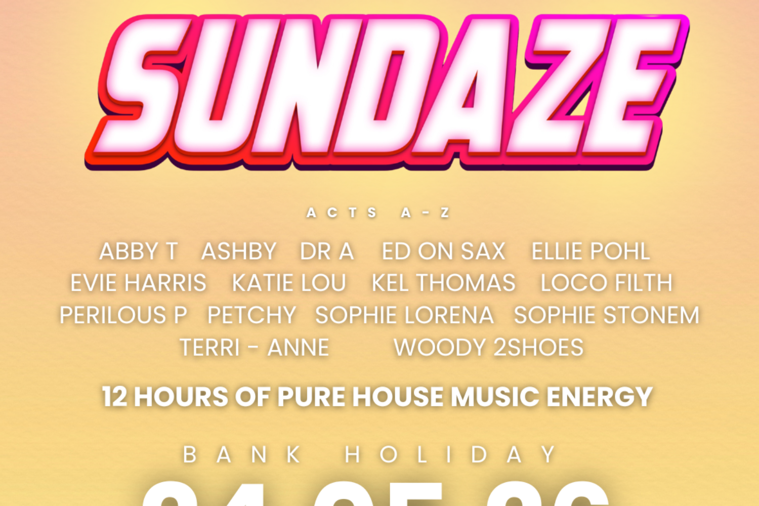 24 May 2026 Robbie Elmore Bank Holiday Sunday 24th May – SUNDAZE When 24 May 2026 - 25 May 2026 16:00 - 03:00 Add To Calendar Download ICS Google Calendar iCalendar Office 365 Outlook Live Event Type Garage House Get ready to welcome summer the right way as we take over Sunrooms2, Southend’s premium venue for all things house on Sunday 24th May from 3PM – 3AM TICKETS ra.co