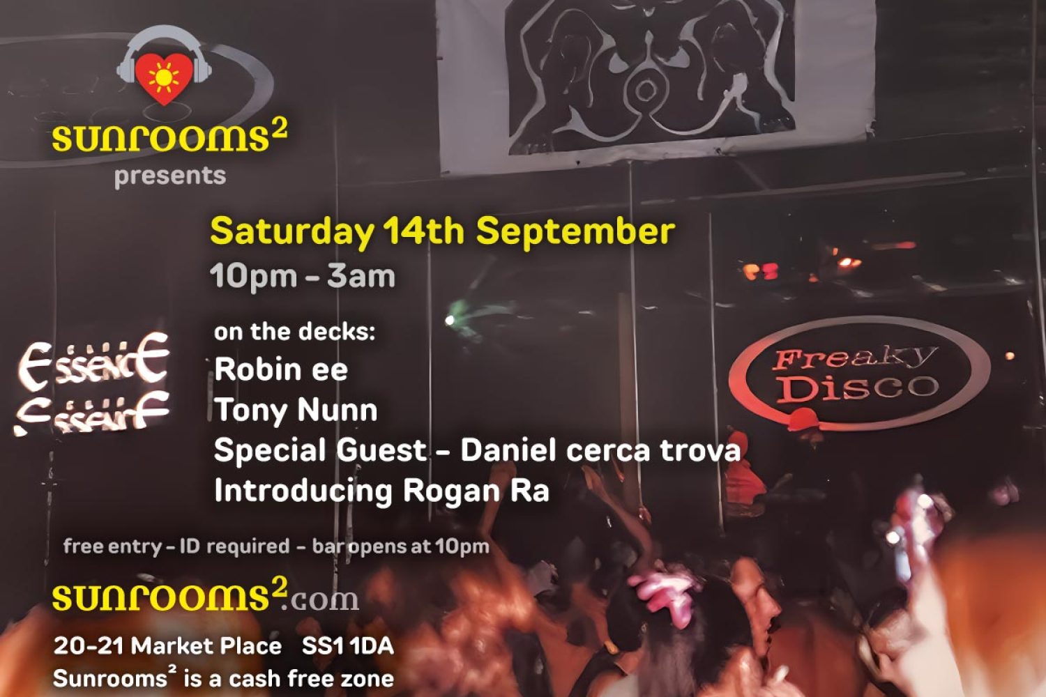 14 September 2024 Robbie Elmore Saturday 14th September – Freaky Disco in session When 14 September 2024 - 15 September 2024 22:00 - 03:00 Add To Calendar Download ICS Google Calendar iCalendar Office 365 Outlook Live Event Type Deep House Deep Tech Bar opens at 10pm, Free Entry A collective of DJ producers that is smashing it in the underground music charts. Expect freshly released tech house and truly brilliant international DJs.