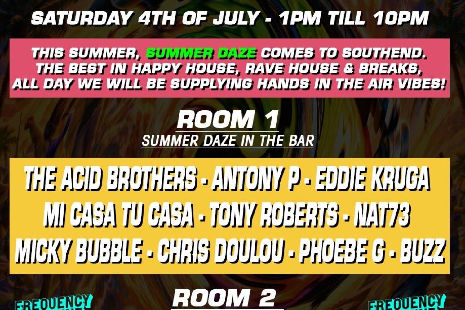 4 July 2026 Robbie Elmore Sat 4th July – Sunshine Daze – In the Loft – Day Party When 4 July 2026 - 5 July 2026 13:00 - 22:00 Add To Calendar Download ICS Google Calendar iCalendar Office 365 Outlook Live Event Type Breakbeat Hard Core