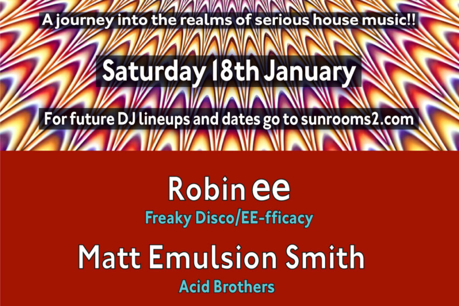 18 January 2025 Robbie Elmore Saturday 18th January – UNDERGROUND When 18 January 2025 - 19 January 2025 20:00 - 03:00 Add To Calendar Download ICS Google Calendar iCalendar Office 365 Outlook Live Event Type Deep House Deep Tech House A true Legend of the underground, DJ / producer Robin ee curates this truly cool as fuck underground house night. Expect a beautiful up-for-it crowd aged 18 to 81